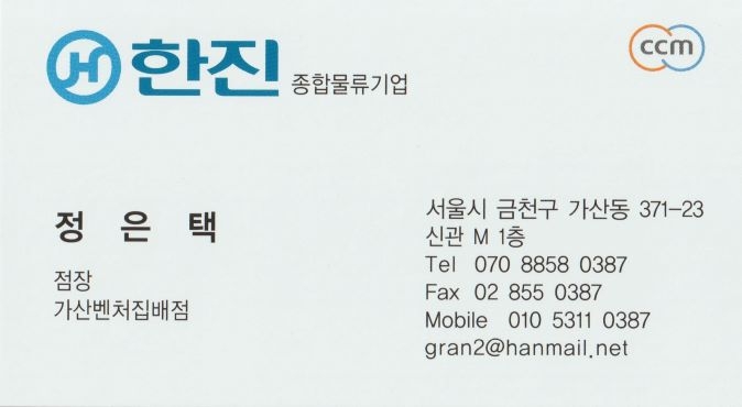 주소 : 서울 금천구 가산디지털2로83 한진택배 신관M1층