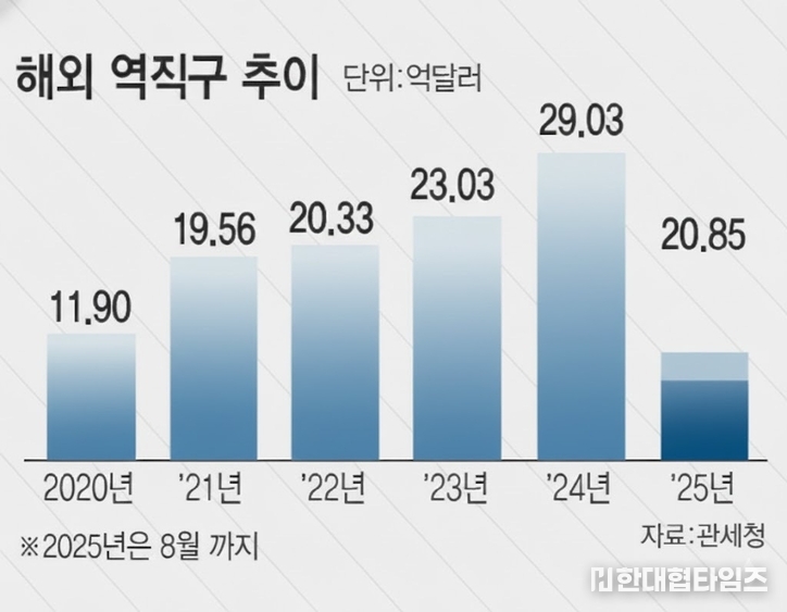 관세청 통계에 따르면 지난해 역직구 규모는 약 29억 300만 달러(약 4.2조 원)로 2020년 대비 144% 급성장했으며, 정부 지원이 더해질 경우 성장세는 더욱 가팔라질 것으로 보인다.